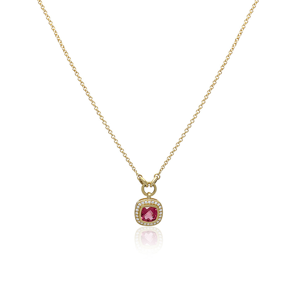 14ct Gold Pink Tourmaline and Diamonds Necklace