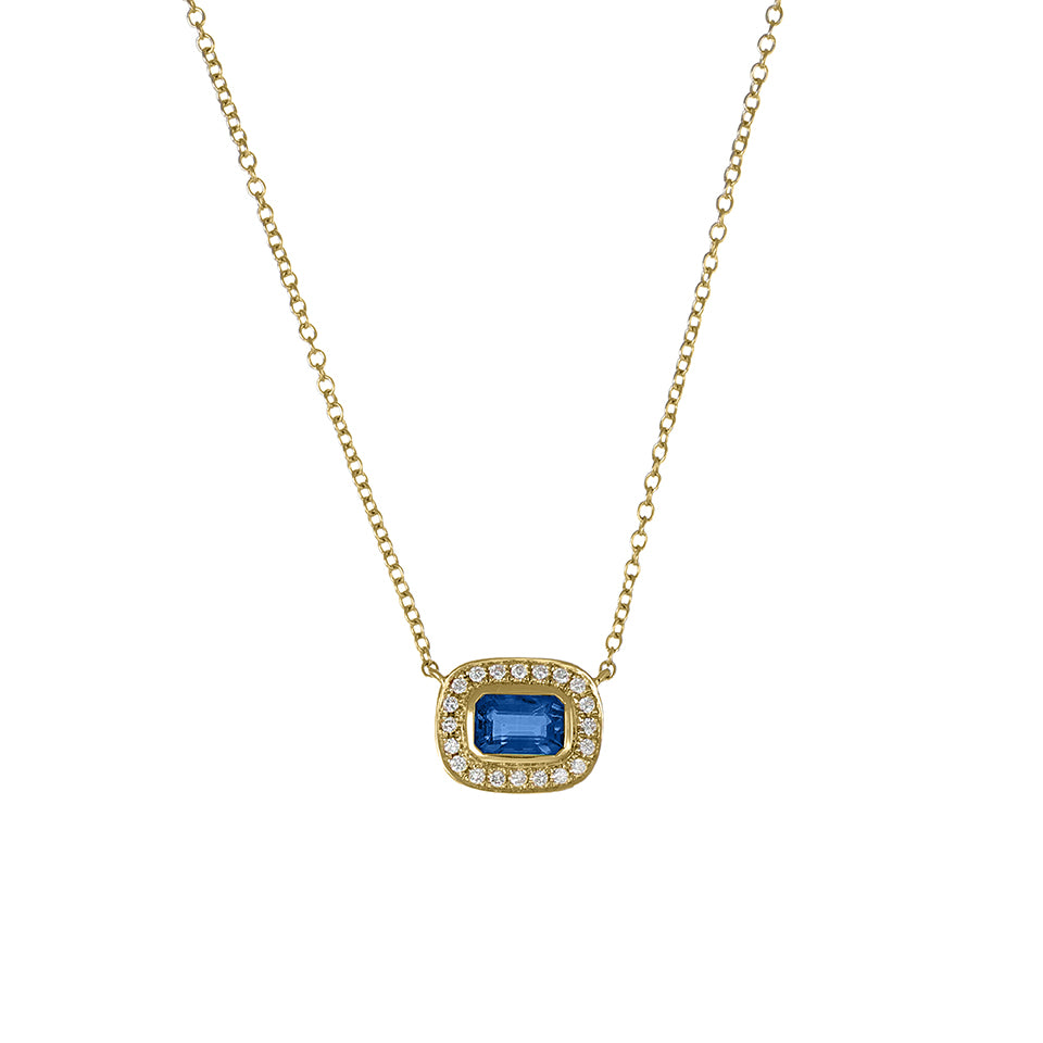 14ct Gold Rubover Sapphire Set with Diamonds Necklace