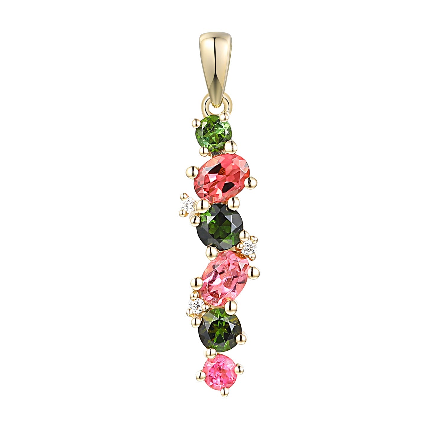 9ct Gold Pink and Green Tourmaline Pendant with Diamonds