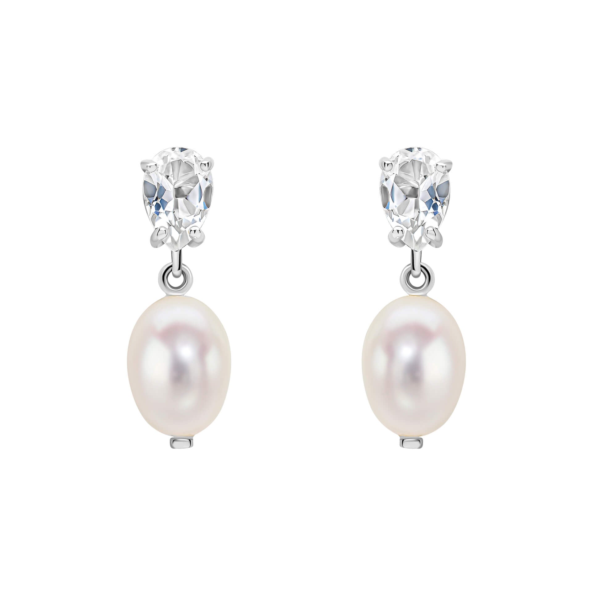 Crafted in luxurious 9ct white gold, these earrings draw inspiration from the graceful lines of modernist architecture, echoing contemporary artistry. At their heart lies a mesmerising freshwater baroque pearl whilst above the pearl, a dazzling white topaz gemstone adds a touch of brilliance, elevating the earrings sophisticated allure. Versatile enough for everyday wear yet equally suited for special occasions, make sure to complement your ensemble with the coordinating pendant for a cohesive and elegant style.