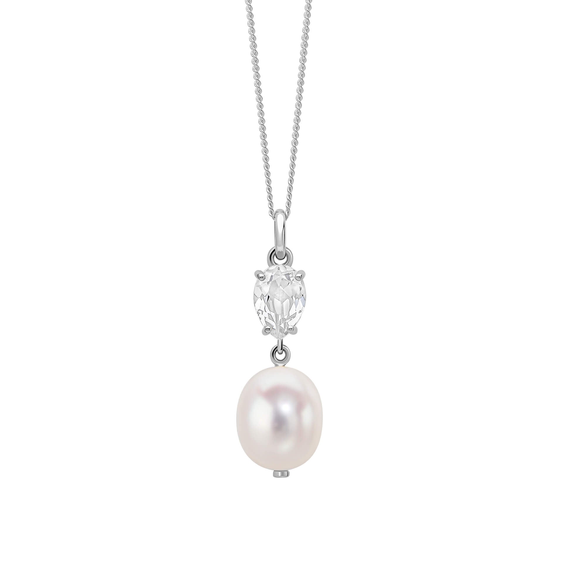 Crafted in luxurious 9ct white gold, this pendant draws inspiration from the graceful lines of modernist architecture, echoing contemporary artistry. At its heart lies a mesmerising freshwater baroque pearl whilst above the pearl, a dazzling white topaz gemstone adds a touch of brilliance, elevating the pendant's sophisticated allure. Versatile enough for everyday wear yet equally suited for special occasions, make sure to complement your ensemble with the coordinating earrings for a cohesive and elegant style.