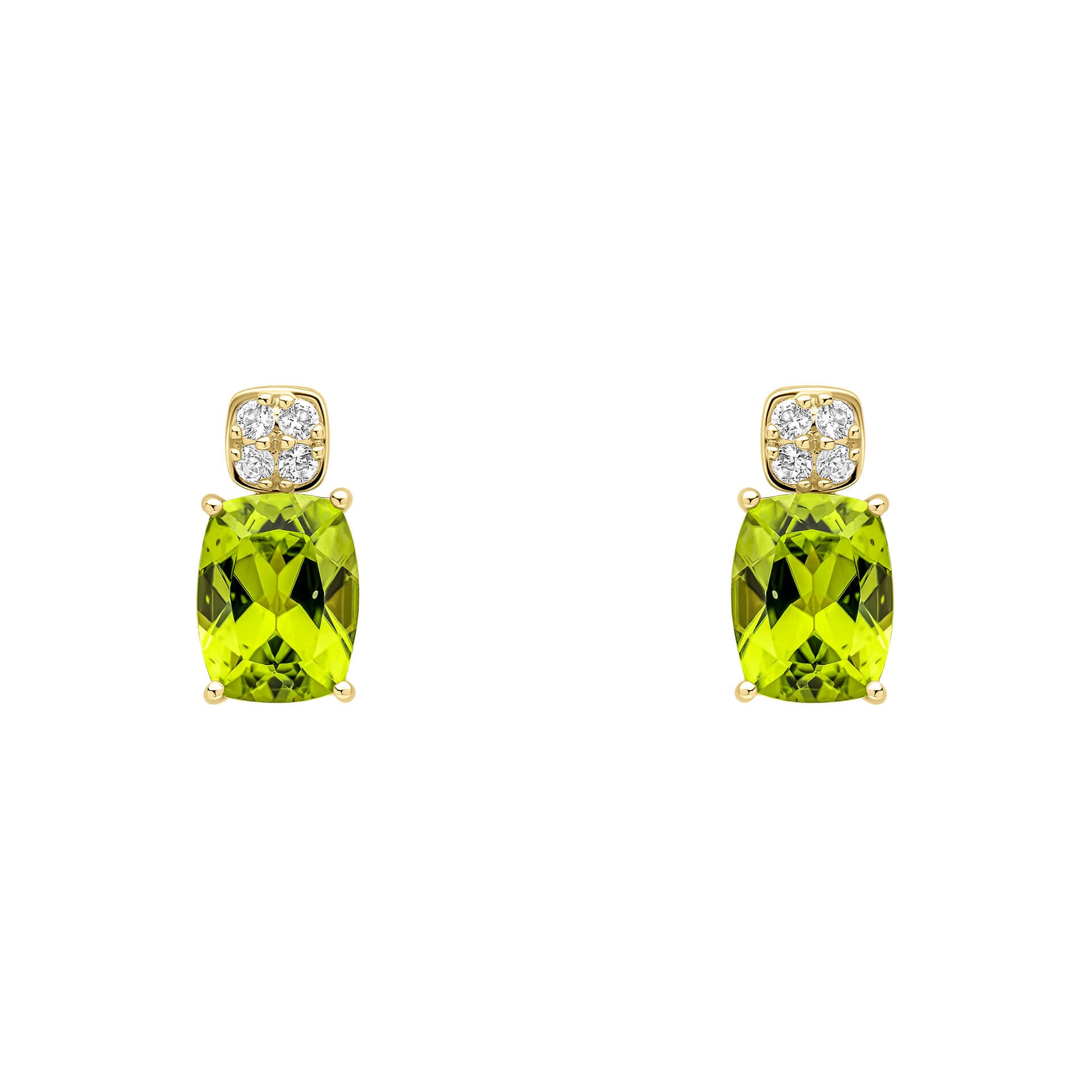 Cushion Cut and Cluster Peridot Earrings in 9ct Gold