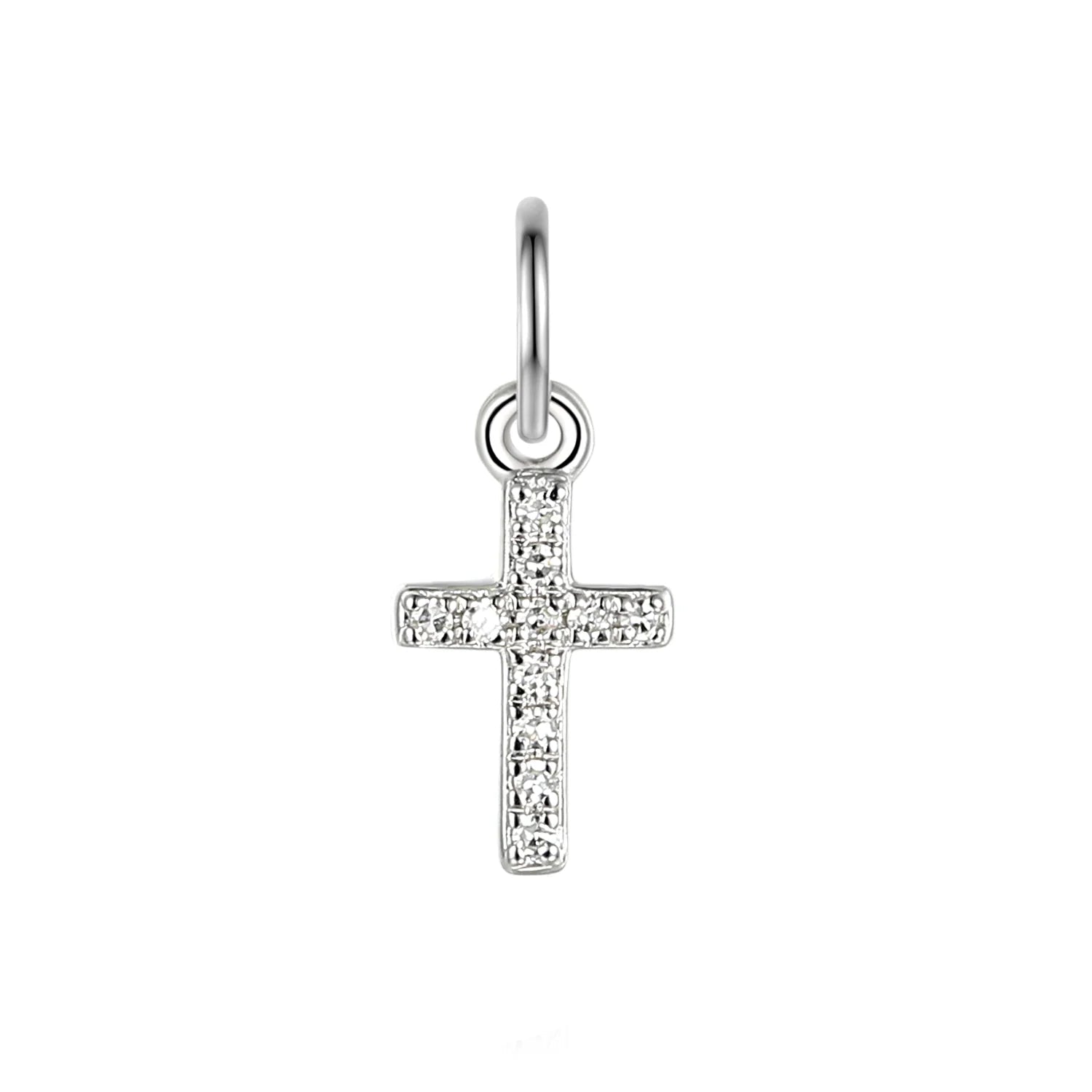 Diamond set cross charm with loop to attach to necklace or bracelet