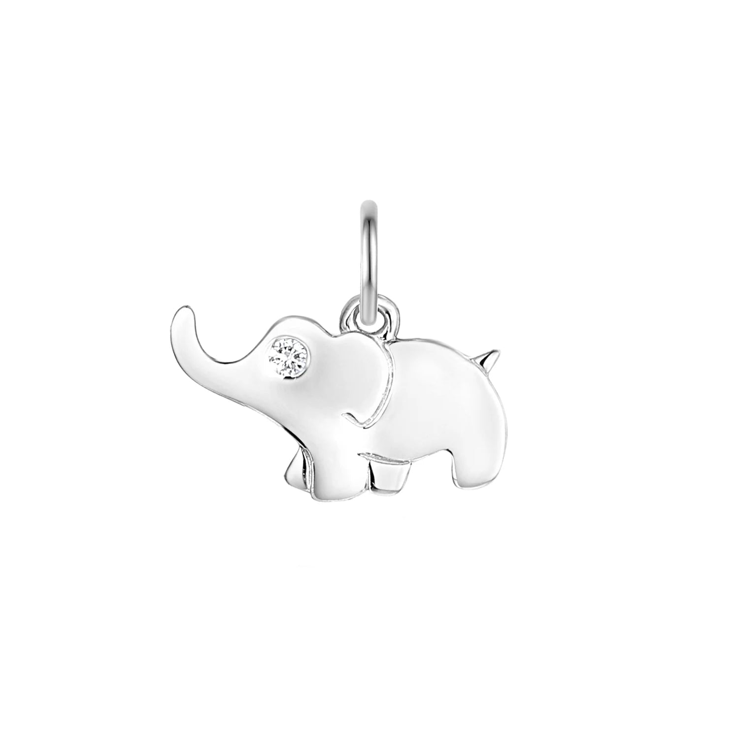 Diamond set elephant charm with loop to attach to necklace or bracelet, diamond in the centre of the eye.