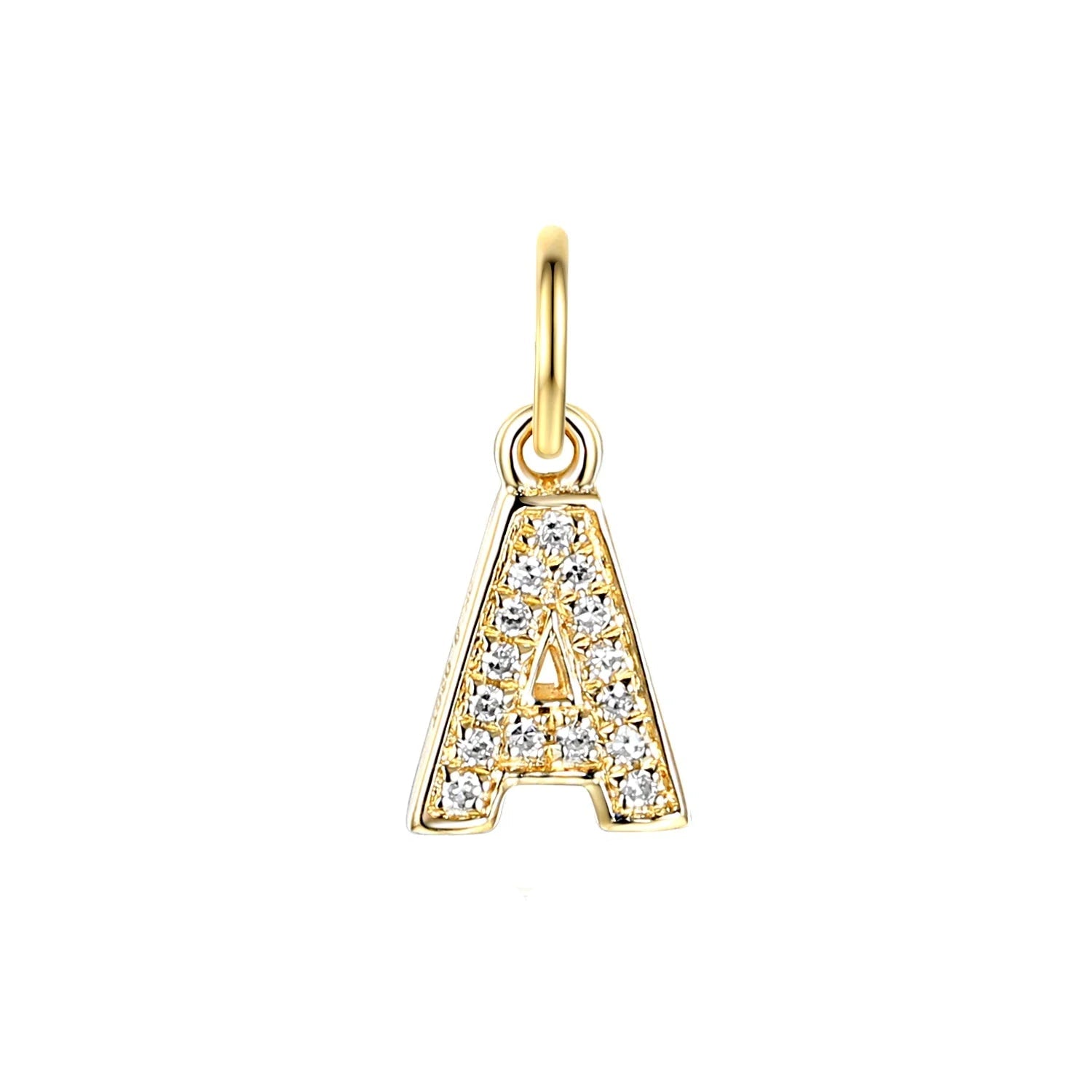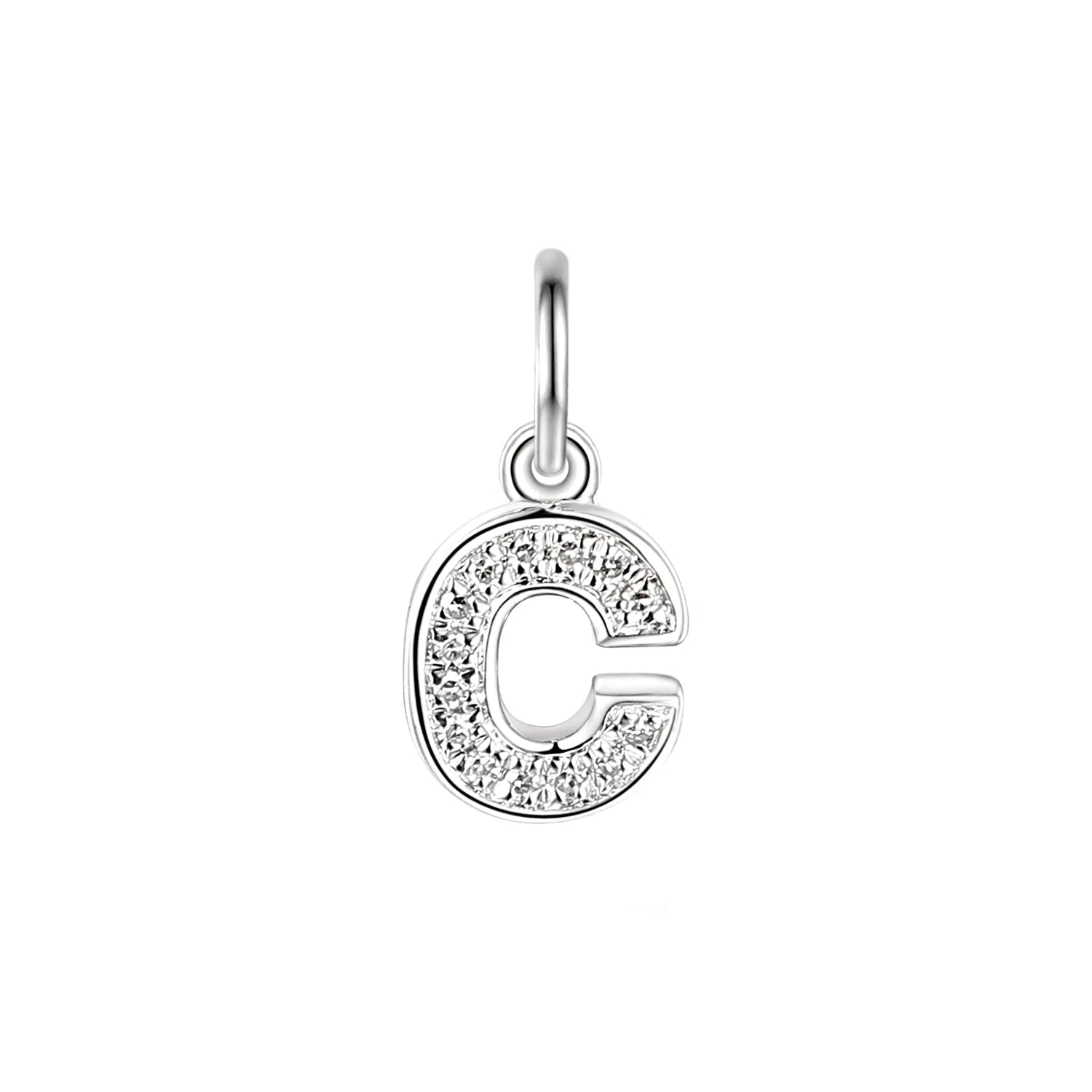 Diamond set initial charm with loop to attach to necklace or bracelet.