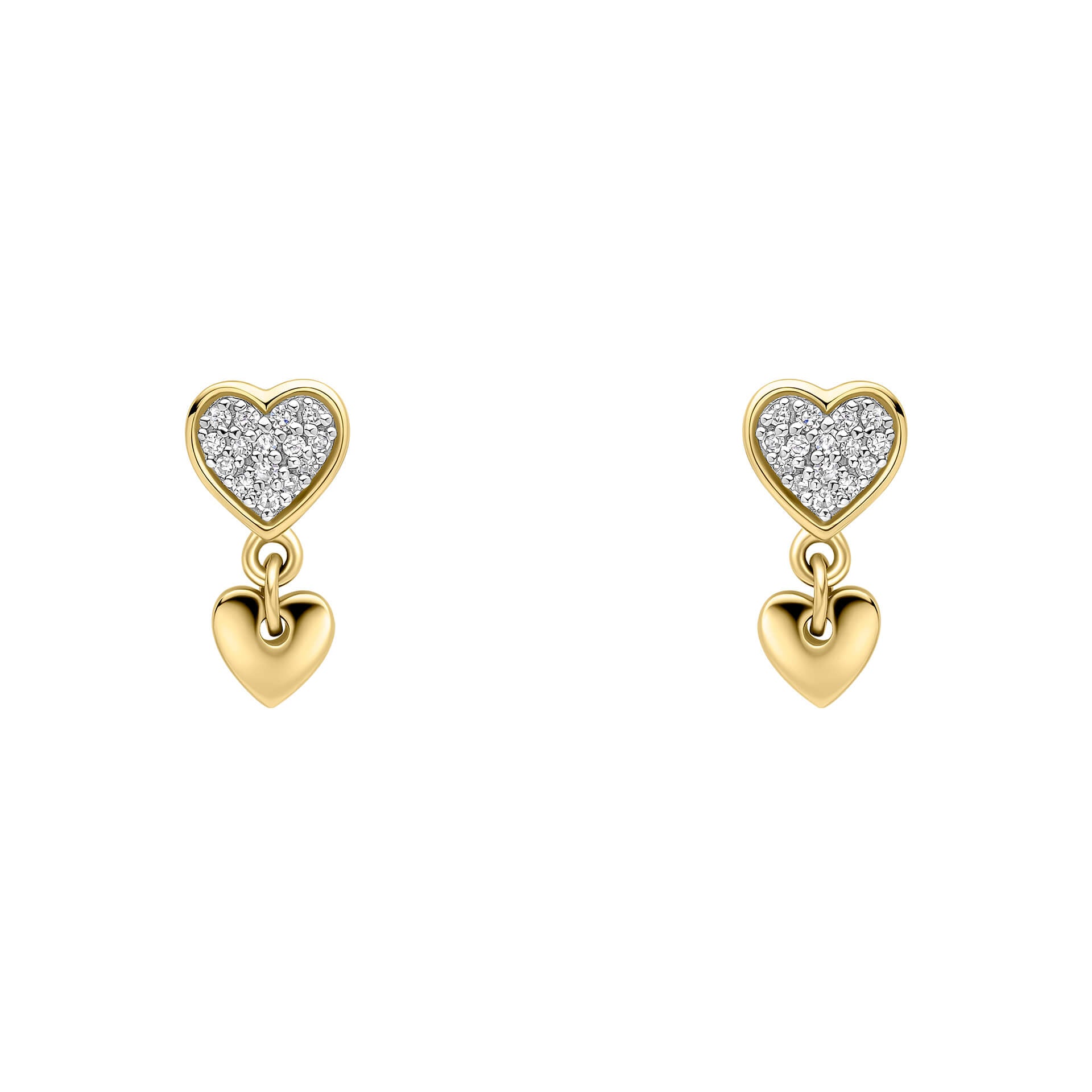 Channelling timeless charm with a modern twist, these drop earrings are crafted in 9ct yellow gold and set with glittering diamonds for a delicate touch of brilliance. Designed for everyday elegance, the softly curved hearts, one sparkling and one polished, capture both sentiment and style. A graceful nod to the romance of the past, they make a meaningful gift or a cherished addition to a personal collection. Complete the look with the matching pendant for a beautifully coordinated finish.