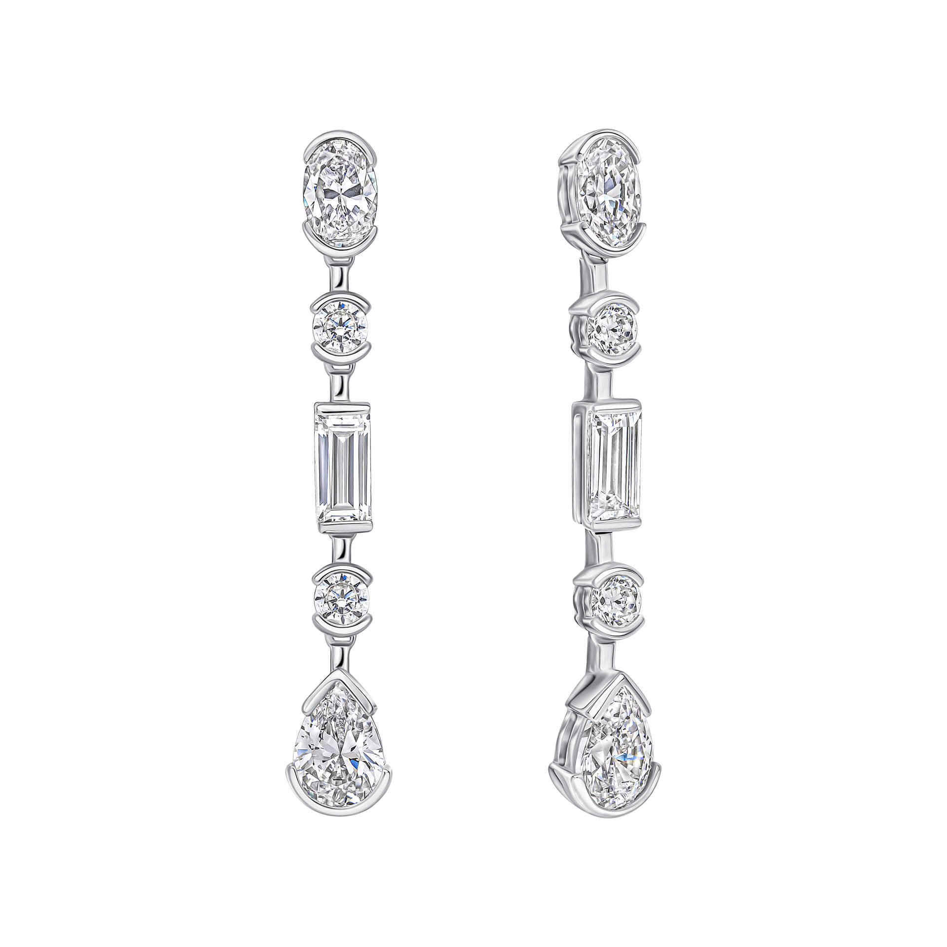 Elongated Half Bezel Drop Earrings