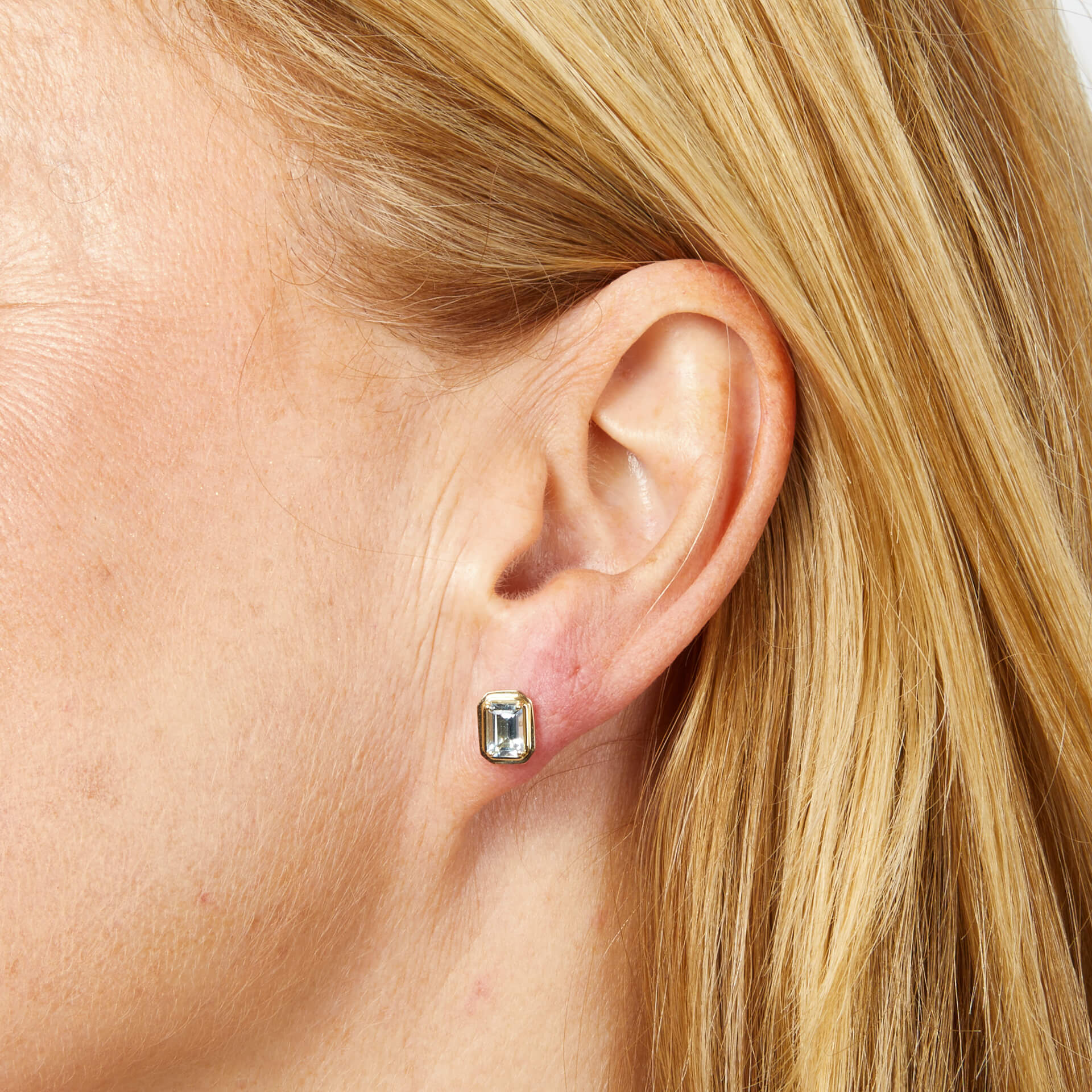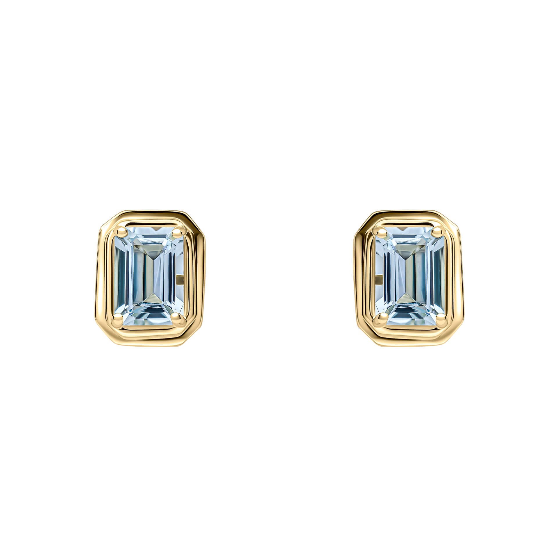Discover the epitome of elegance with these stunning stud earrings. Crafted in luxurious 9ct yellow gold, these delicate studs encapsulate the essence of modernist architecture. Each earring features a mesmerising elongated octagon-shaped aquamarine stone and reflects contemporary structures and art within the design. With their delicate yet striking profile, these earrings effortlessly elevate any ensemble, offering a timeless addition to your jewellery collection. Complete the look with the matching pendant for a coordinated and sophisticated aesthetic.