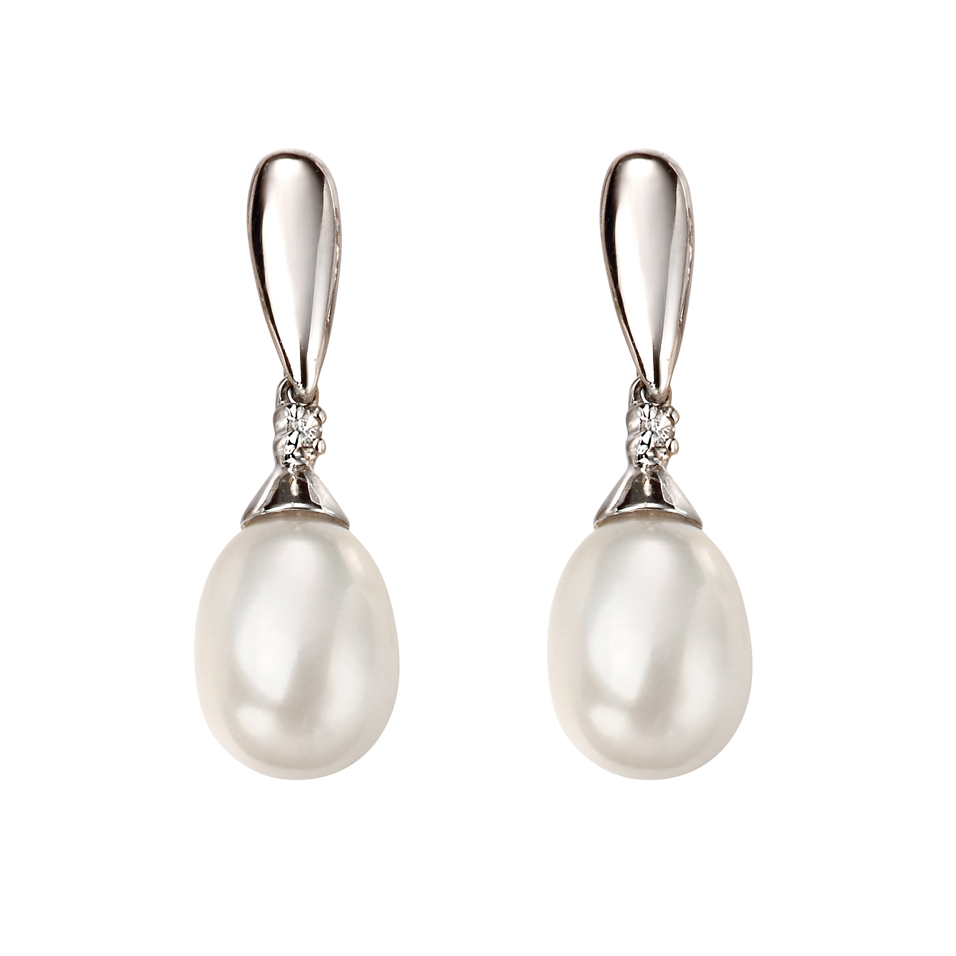 Freshwater Pearl and Diamond Drop Earrings in 9ct Gold