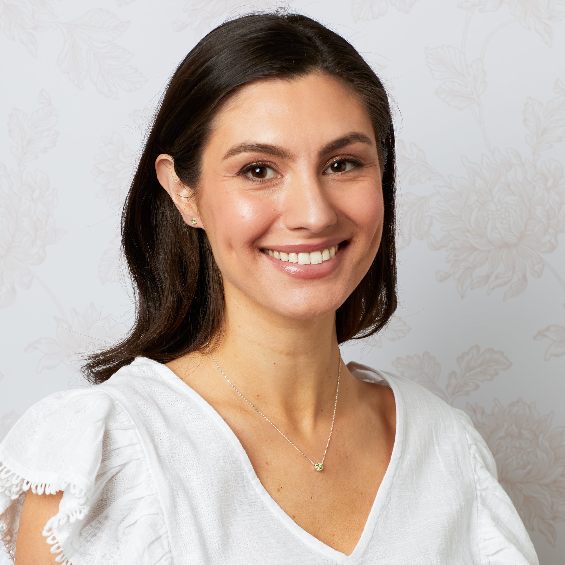Crafted in recycled sterling silver, these stud earrings are inspired by Laura Ashley’s beautiful and intricate print Megan. Echoing the soft, flowing lines of this floral design, each earring features a delicate petal setting that cradles a Peridot, creating the look of an open flower catching the light. Feminine and timeless, these earrings reflect the joy of nature’s quiet moments and pair beautifully with the matching necklace for a delicate, coordinated finish.