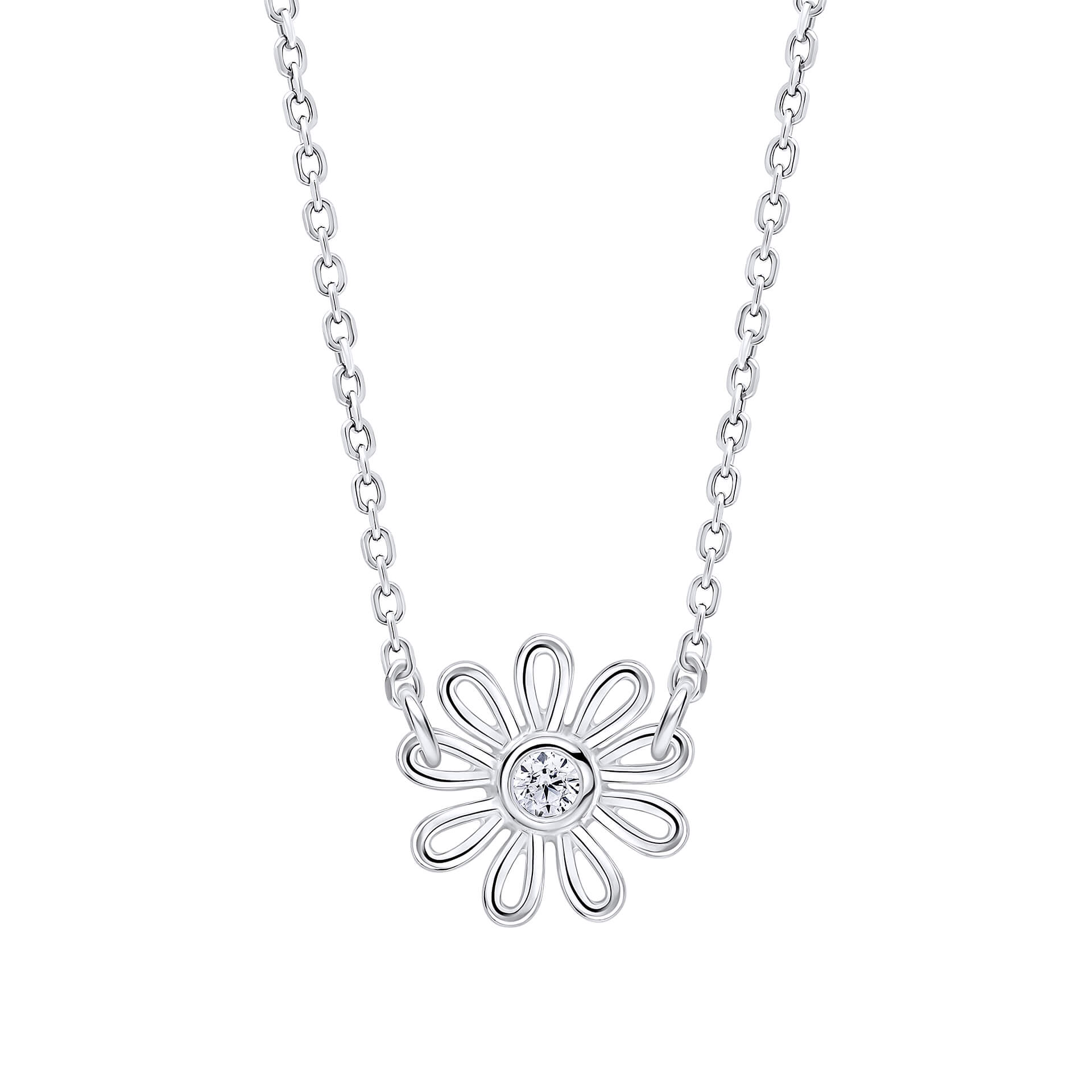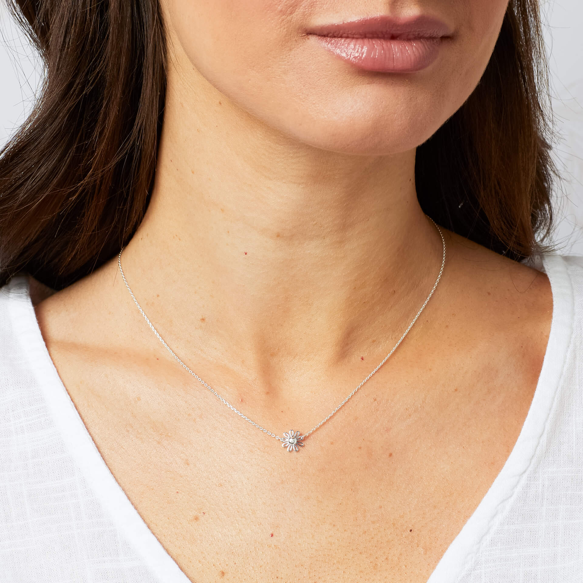 Inspired by the delicate charm of Laura Ashley’s Thorncliff Daisy print, this playful necklace beautifully reflects the print’s stylised daisy design. Crafted from recycled sterling silver, it features a dainty daisy set with shimmering cubic zirconia, the graceful silhouette echoing the timeless floral motifs of the original pattern. Feminine and effortlessly romantic, this necklace lends a timeless floral elegance to your look, especially when paired with the matching earrings.