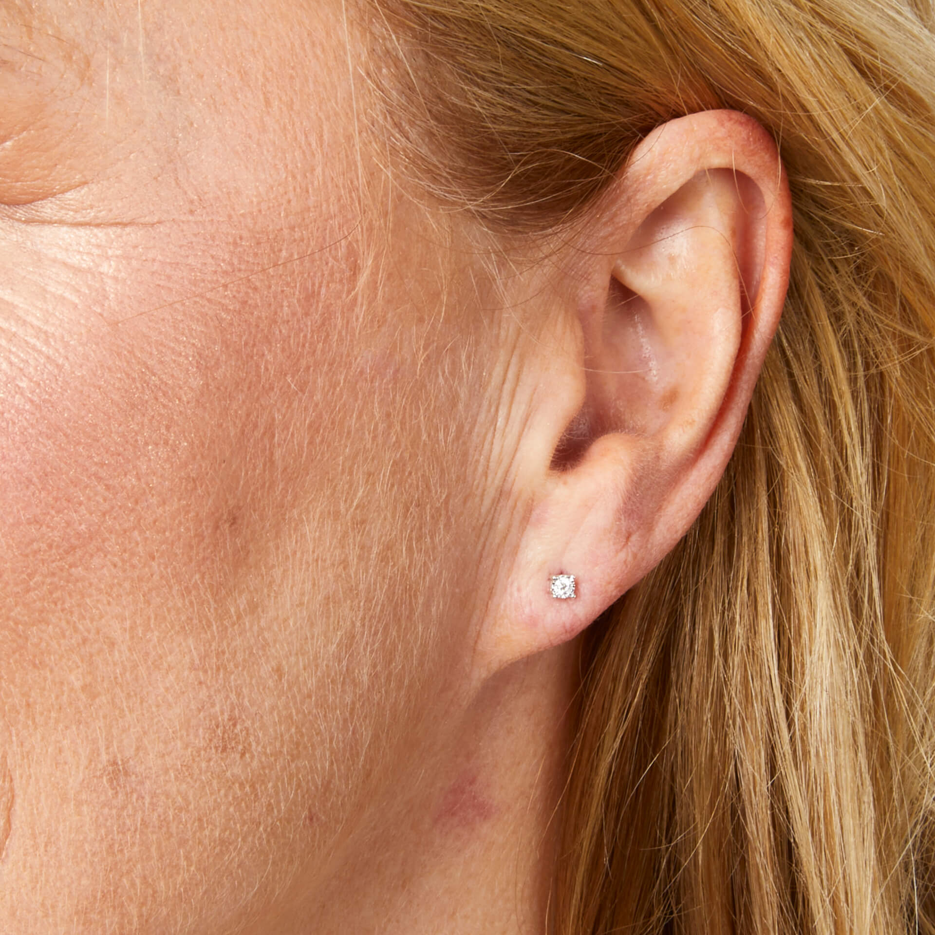 Introducing the mini diamond stud earrings, a testament to understated elegance and modern sophistication. Crafted in 9ct white gold, these exquisite earrings feature a brilliant solitaire diamond in each stud, capturing the essence of timeless beauty and refined artistry. Perfect for any occasion, these earrings add a touch of elegance to both day and evening ensembles. For a complete and harmonious look, pair it with the matching necklace, ring, and bracelet.