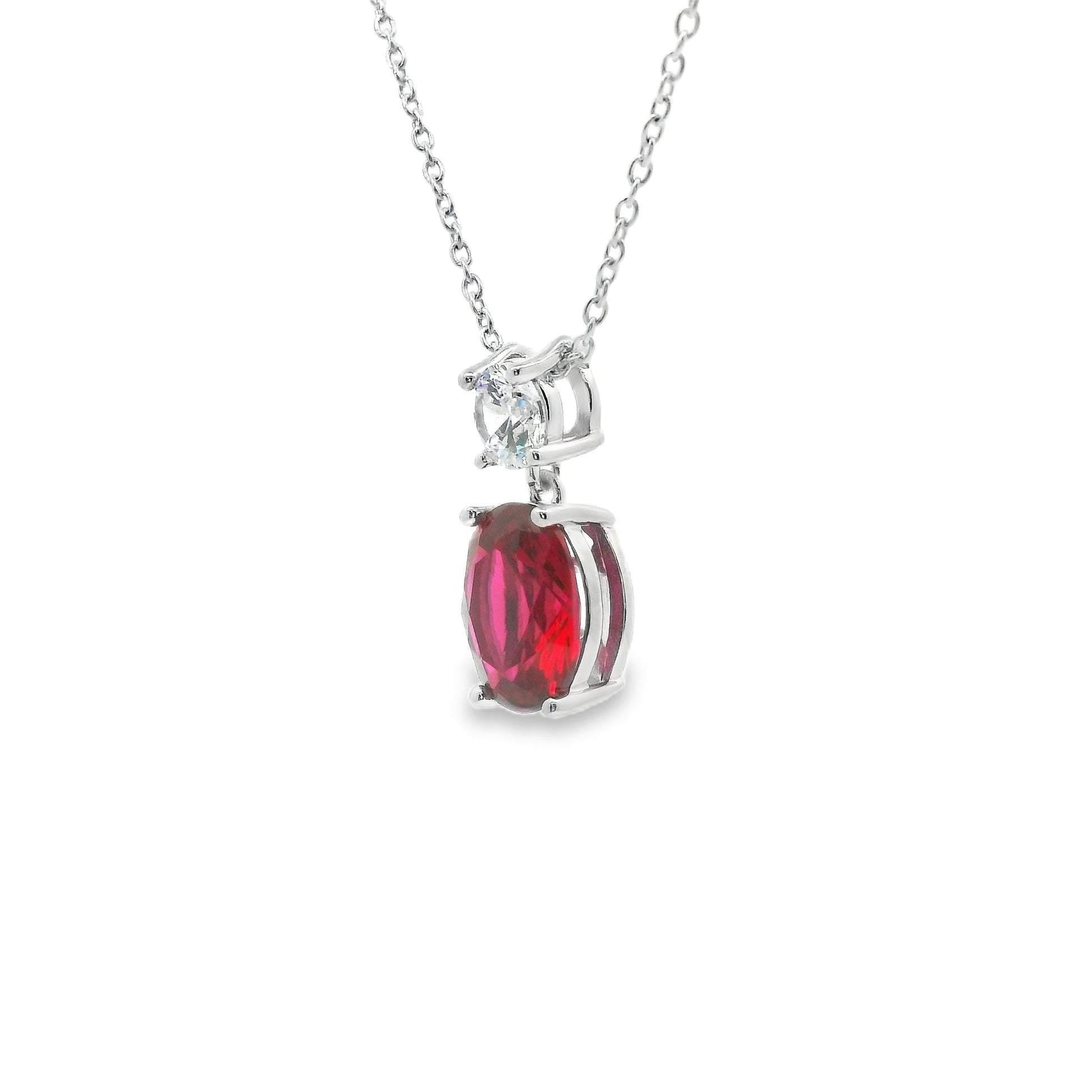 At the heart of this enchanting piece, a captivating oval zirconia takes centre stage. Its rich, deep hue exudes a timeless charm. Above this magnificent zirconia stone sits a smaller clear zirconia stone that glistens like a star in the night sky. Crafted to perfection in sterling silver with Diamonfire’s triple plating, this pendant is perfect for adding a splash of colour to your style – especially when worn with the matching earrings, bracelet and ring.