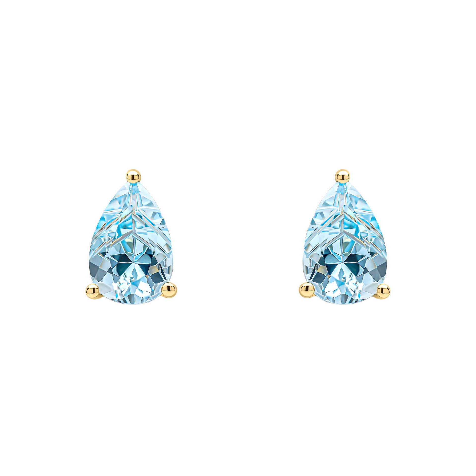 Indulge in luxury with these stud earrings, inspired by the sleek lines of modernist architecture. Crafted in 9ct yellow gold, these earrings showcase pear-shaped blue topaz stones, each delicately held in a claw setting. The distinctive fancy cut of the topaz creates an entrancing display of light, mirroring the dynamic interplay of lines found in modern architecture. Complete your ensemble with effortless elegance by pairing these earrings with the matching necklace, seamlessly blending sophistication and style.