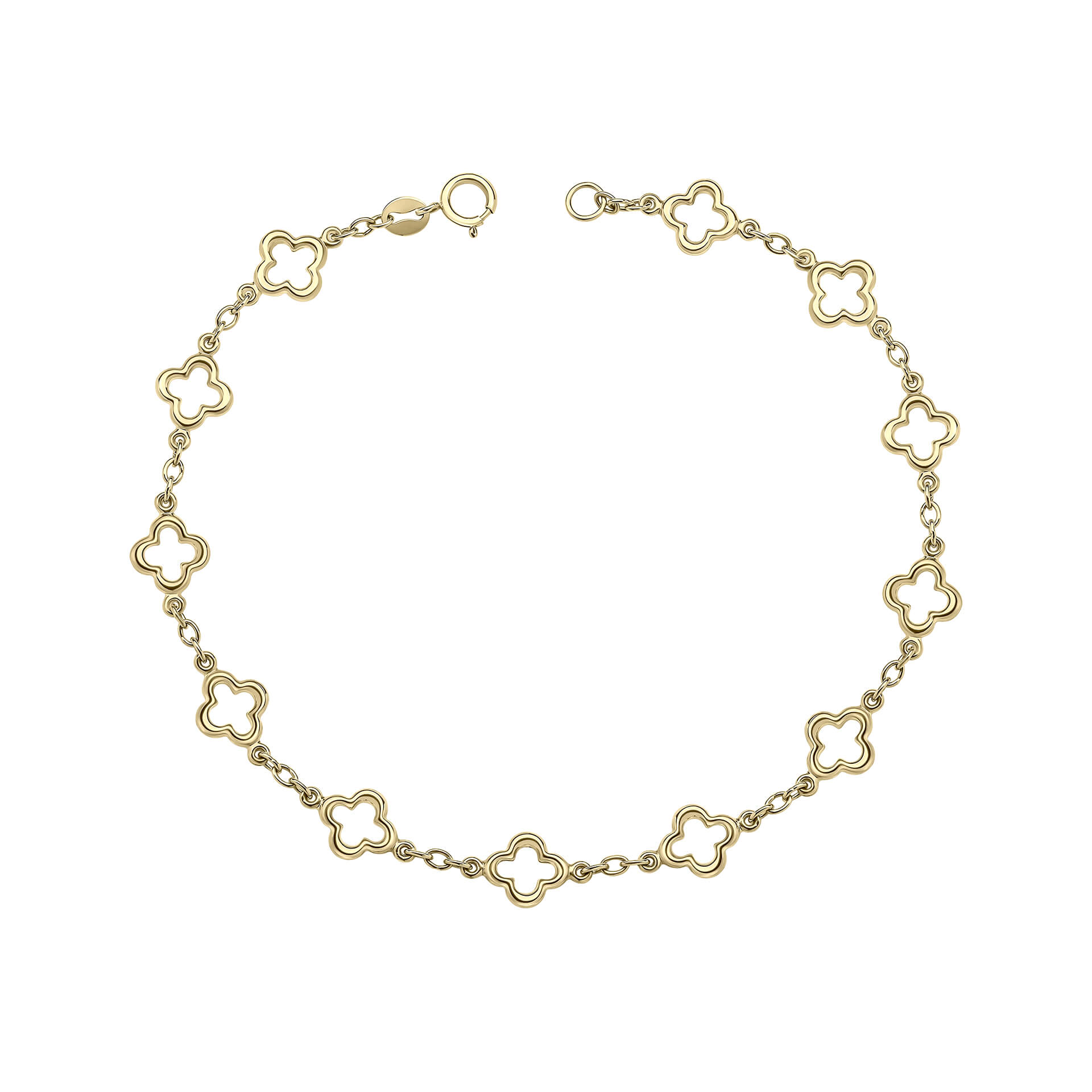 Rooted in history and reimagined for today, this station bracelet draws inspiration from the ornate quatrefoil motifs seen in grand architecture. Crafted in 9ct yellow gold, each evenly spaced symbol reflects good fortune and timeless grace. With its stunning design and intricate silhouette, it offers a contemporary yet meaningful accent to everyday styling. Pair it with the matching station necklace for a coordinated look that honours heritage while embracing modern sophistication.