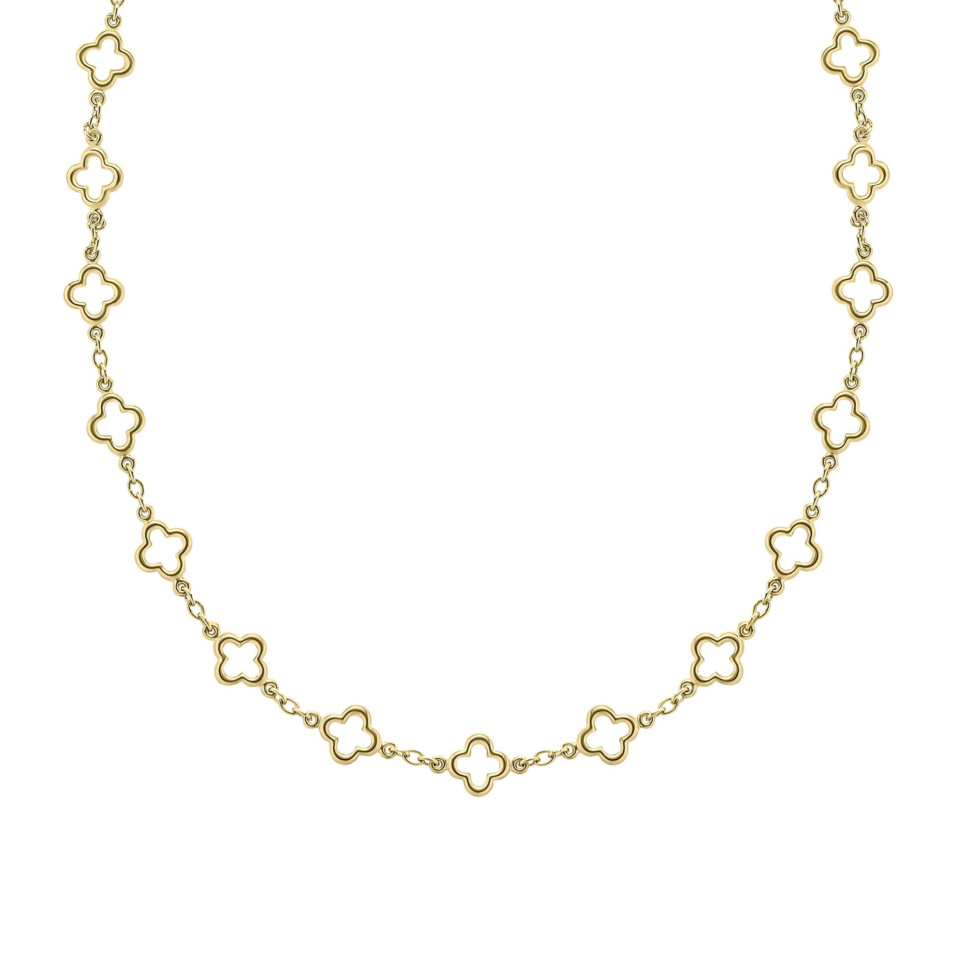Rooted in history and reimagined for today, this station necklace draws inspiration from the ornate quatrefoil motifs seen in grand architecture. Crafted in 9ct yellow gold, each evenly spaced symbol reflects good fortune and timeless grace. With its stunning design and intricate silhouette, it offers a contemporary yet meaningful accent to everyday styling. Pair it with the matching station bracelet for a coordinated look that honours heritage while embracing modern sophistication.