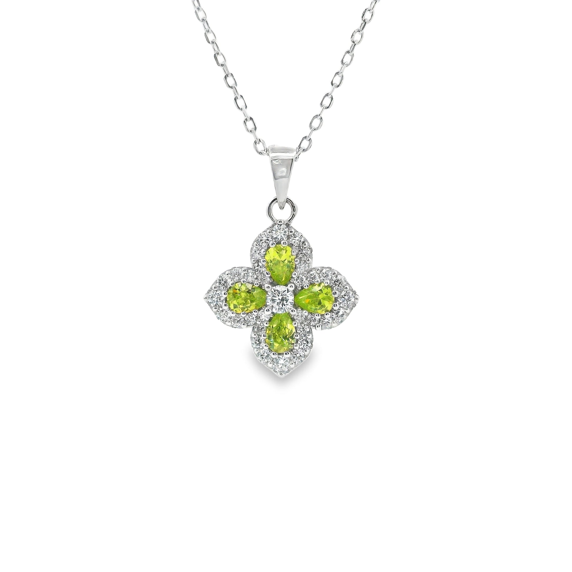 Silver & Peridot Cubic Zirconia Classic Clover Necklace