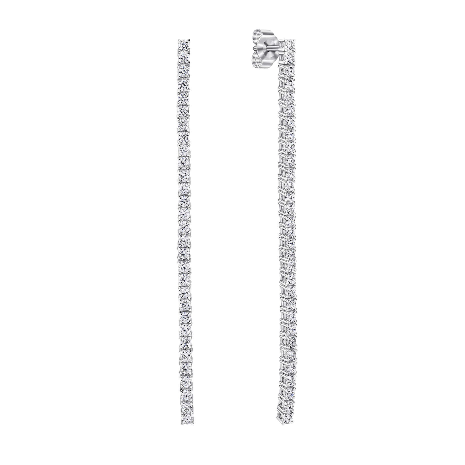 Designed to flow with elegance, these Diamonfire linear drop earrings offer refined understated luxury. Featuring a continuous line of Diamonfire cubic zirconia stones, expertly cut and polished to mirror the brilliance of a genuine diamond, they create a radiant display of sparkle with every movement. Crafted in sterling silver and finished with a luxurious triple plating of palladium, platinum and rhodium, the earrings deliver lasting shine and a polished finish. Their elongated silhouette adds graceful elegance, making them an ideal choice for evening wear, special occasions, or elevating a contemporary look.
